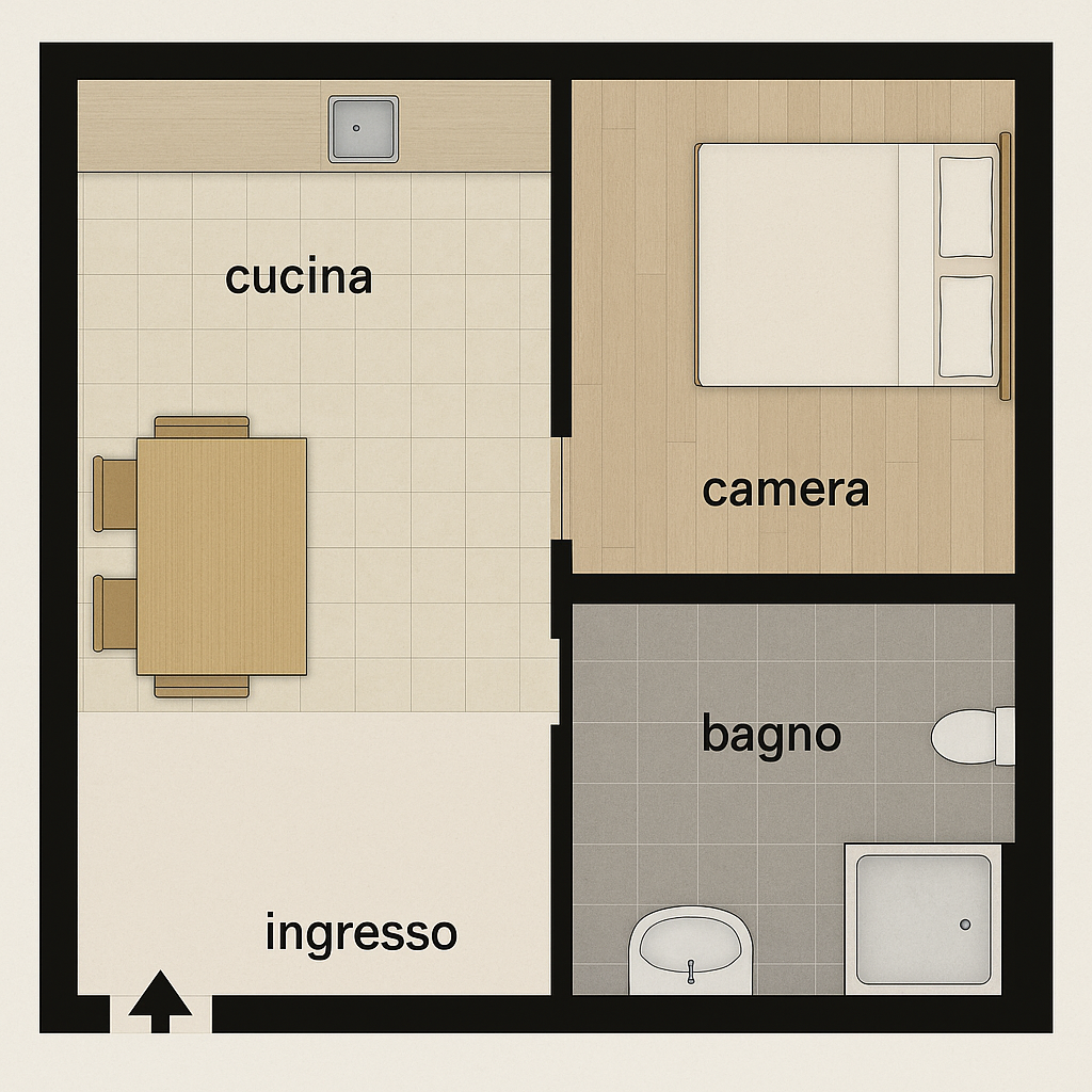 – Bagno con doccia, funzionale e pratico;