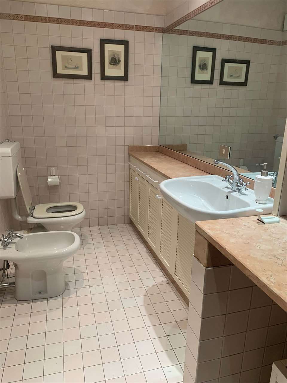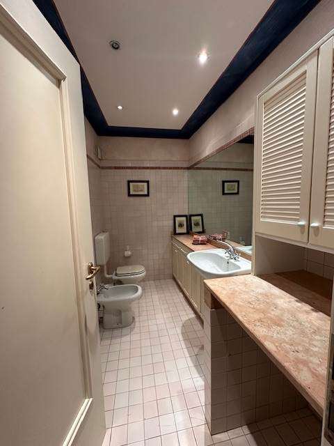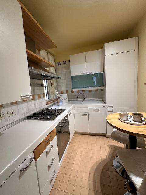 Ampio Ingresso, ampia sala da pranzo/soggiorno, piccola cucina completa di elettrodomestici, tre camere ( o due camere e studio) e due bagni ciechi , di cui uno con vasca ed uno con doccia.