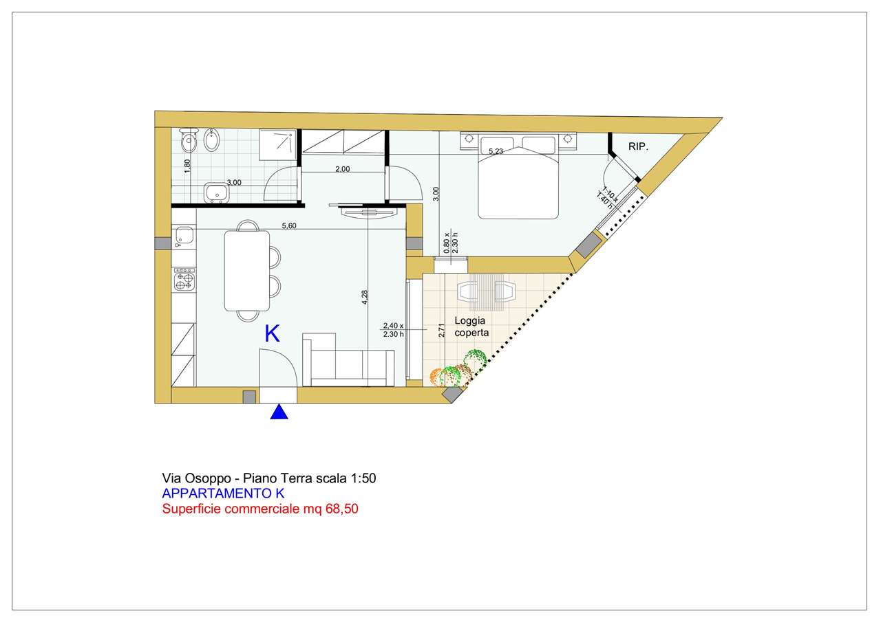 In zona Cittadella, proponiamo in vendita il bilocale “K” di 69 mq, situato al piano terra di una palazzina anni ’60 di sole 5 unità, che sarà completamente ristrutturata nelle parti comuni e nei singoli immobili, con classe energetica A2.