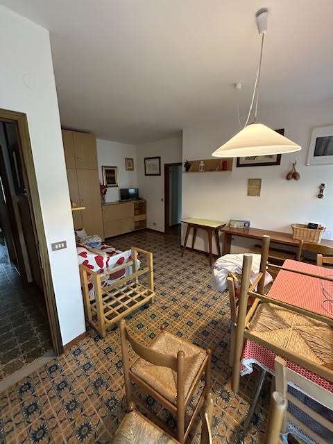 Ingresso su soggiorno con angolo cottura, 1 camera matrimoniale, 1 camera singola.